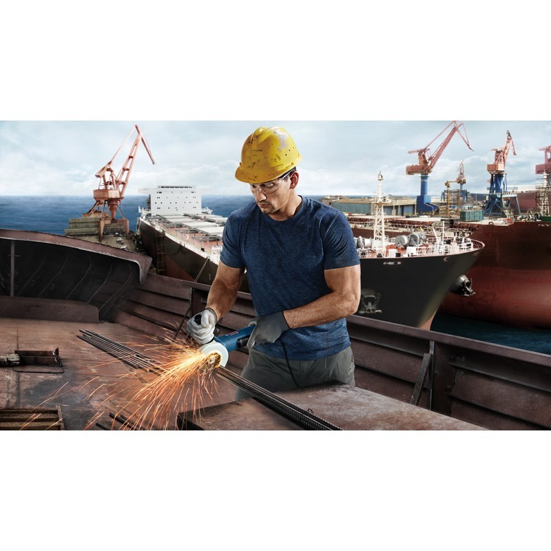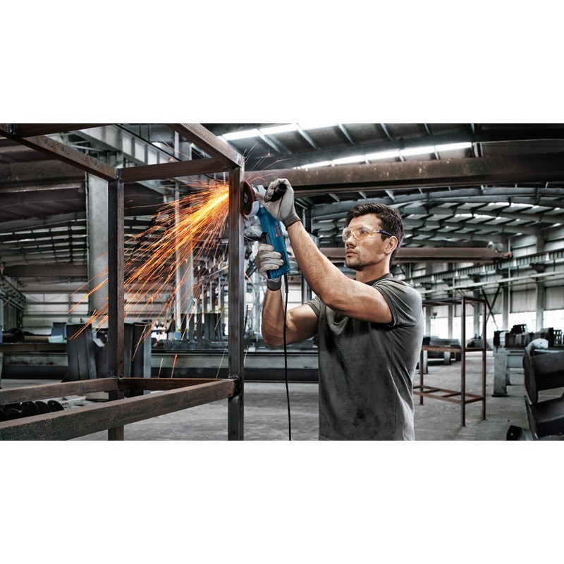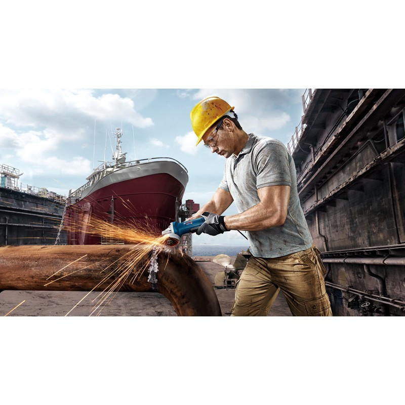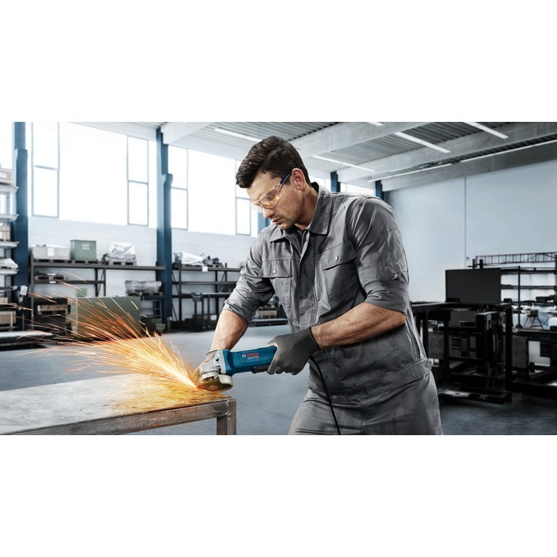 Amoladora GWS 9-115 P, La GWS 9-115 P Professional ofrece mejor protección al usuario gracias al PROtection switch (dispositivo de hombre muerto) en forma de paleta que, cuando se suelta, corta inmediatamente el suministro de corriente a la máquina. Esta amoladora angular, que cuenta con un motor de 900 W altamente eficiente, proporciona una experiencia de corte y amolado superior, así como un manejo mejorado gracias a su diseño ergonómico en forma de paleta y a su delgada empuñadura, ideal para la mano. Ideal para diversas aplicaciones de corte y amolado. Gracias a su diseño y componentes robustos, la GWS 9-115 P garantiza una larga vida útil en condiciones de trabajo difíciles.