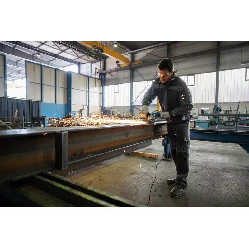 Buscar una amoladora angular fácil de utilizar y cómoda para uso diario puede suponer un desafío. Por eso hemos diseñado la familia de productos GWS 12. El modelo GWS 12-125 Professional es compacto, práctico, económico y a la vez potente. Cuando se utiliza esta herramienta, se aprecia más confort y menos fatiga gracias a su diseño ergonómico con superficie de agarre más pequeña. El motor es robusto y potente, y tiene una buena capacidad de sobrecarga para acelerar el progreso del trabajo en aplicaciones habituales con metal. Para facilitar su manejo, la herramienta está equipada con una protección de ajuste sin herramientas y un interruptor bloqueable. Cuenta también con protección contra rearranque y hemos incluido una protección de plástico con cierre de clip para aplicaciones de corte en nuestro suministro de serie.