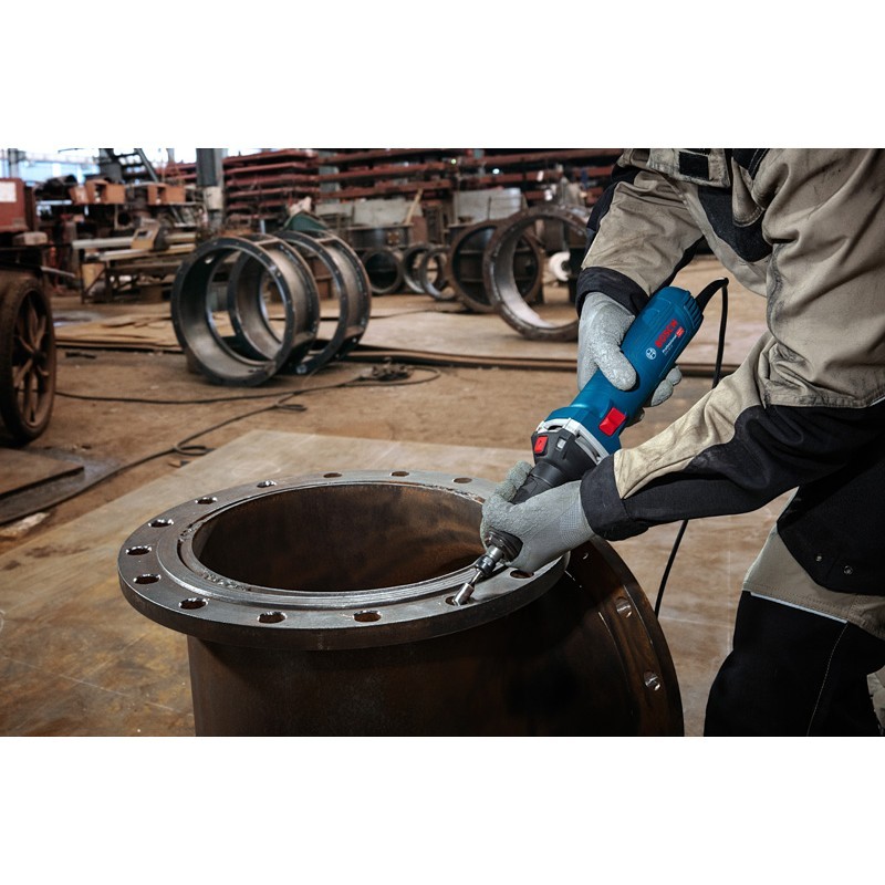 La amoladora de troqueles GGS 30 LS Professional está fabricada para ofrecer máxima comodidad y seguridad a la vez que proporciona un potente rendimiento para amolar. Gracias a la función de bloqueo del husillo, solo se necesita una llave para cambiar el accesorio. Las características adicionales del diseño garantizan un manejo suave y sin fatiga, y seguridad mejorada: esta amoladora de troqueles es ergonómica con un agarre más pequeño e incluye KickBack Control, arranque suave y protección contra reinicio. Esta potente amoladora de troqueles con entrada de 750 W y hasta 33 000 rpm ofrece alto rendimiento para trabajos de amolado pesado. Afronta trabajos en metal con facilidad y es la herramienta preferida para amolar moldes, desbarbar superficies, fresar agujeros, procesar costuras de soldadura, y eliminar pintura y óxido.