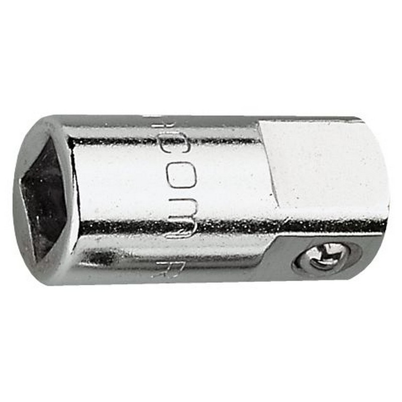 Aumentador de impacto FACOM con 4 caras métricas y con cuadrado macho de ¼?€? y hembra de ??€?. Su presentación es en cromado brillante. Para mayor seguridad utilice este accesorio junto a las anillas y pasadores adecuados según su uso. Datos técnicos: - Cuadradillo: ¼ y ??€?. - Unidades de medida: mm.