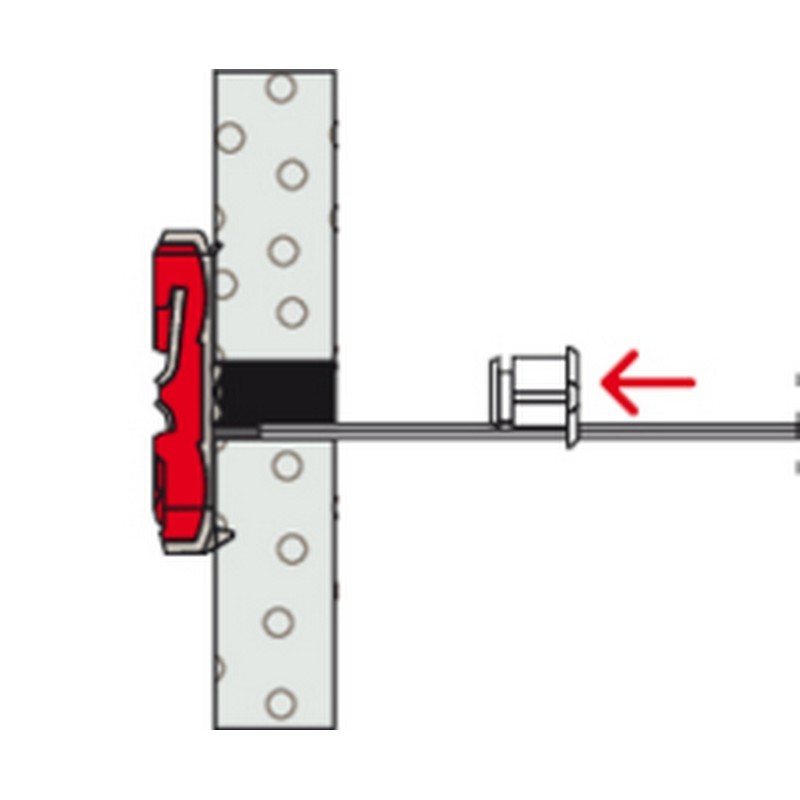 Los plásticos reforzados con fibra de vidrio y la pieza de esqueleto metálico (fischer DuoTec 12) garantizan el alojamiento de grandes cargas de tracción y transversales en todas las placas.