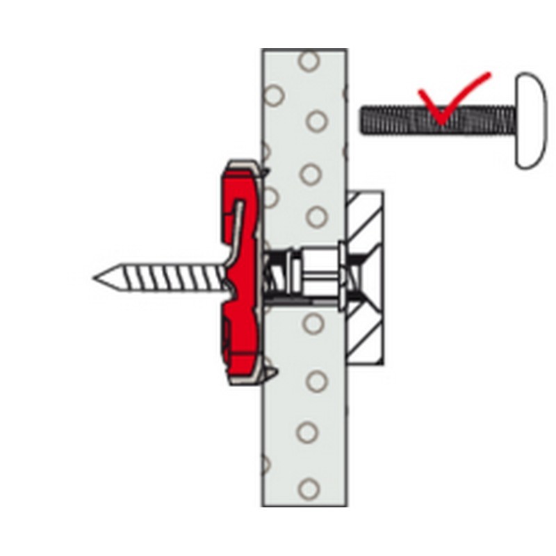 El funcionamiento exclusivo y la geometría de tacos del DuoTec de fischer permiten un soporte de cargas muy pesadas para tacos vuelco. En comparación con los anclajes tradicionales, Fischer DuoTec permite reducir la sección del agujero perforado y poder completar la instalación incluso en espacios pequeños, con fijaciones invisibles y con un resultado estético perfecto. Además, no hay recorte en el área de soporte para que la pared de yeso no se debilite. Como miembro de la línea DUO, el DuoTec se compone de dos componentes de plástico. El componente rojo y duro del manguito del taco permite la distribución uniforme de la carga, y el gris y blando impide causar daños en la superficie de la placa durante la fijación, reduciendo así la carga. En aplicaciones en placas, detrás de las cuales hay un hueco, se utiliza el DuoTec como un taco vuelco. En materiales macizos, el taco también puede utilizarse como taco de expansión.
