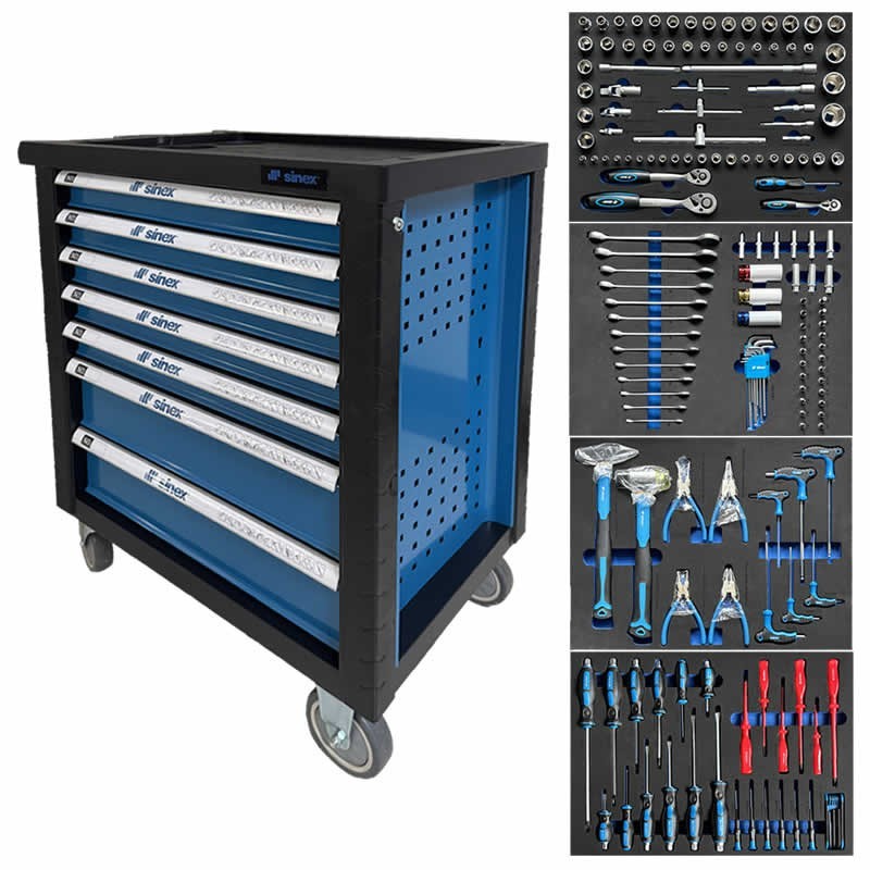 Carro de herramientas con 7 cajones con termoformados de espuma para un fácil acceso a las herramientas.