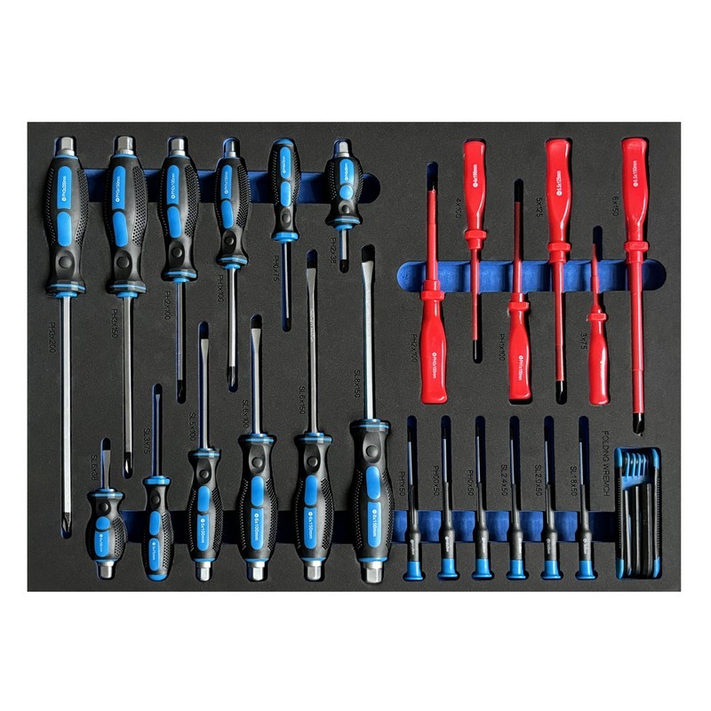 MÓDULO D - 33 piezas: Destornilladores y llaves allen.