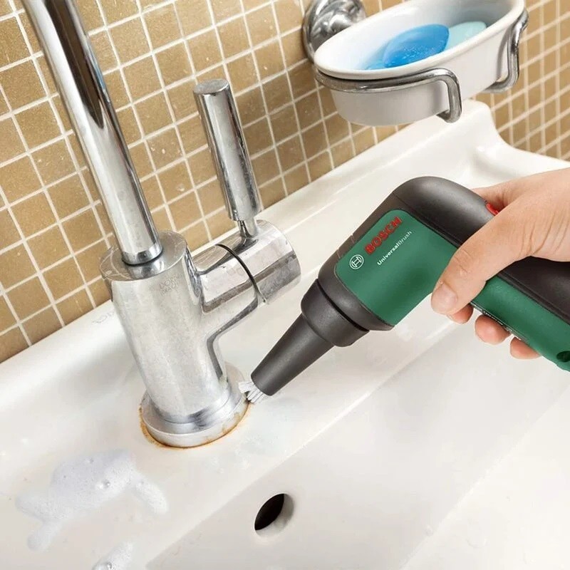 El multifuncional y resistente cepillo UniversalBrush hace la vida más fácil: es un ayudante versátil para eliminar la suciedad ligera y la más persistente. Su potente motor asegura un giro casi constante de los cepillos para hacer frente a las tareas de limpieza más exigentes. Los diferentes accesorios permiten su uso en una amplia gama de superficies y materiales. Gracias a su protección IPX5 frente a las salpicaduras de agua, también se puede utilizar en entornos húmedos. Este cepillo es capaz de fregar azulejos y juntas, muebles de jardín, hornos, ollas y sartenes, mamparas de ducha, y llega incluso a zonas estrechas como el grifo o la ducha. Esta práctica herramienta permite trabajar sin cables y se puede recargar mediante un cable micro USB.