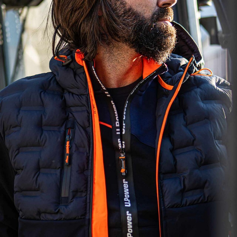 Chaqueta híbrida repelente al agua, transpirable y antiviento, extremadamente versátil e ideal para quienes realizan trabajos dinámicos en ambientes fríos o medio-templados, sin por ello sacrificar la libertad de movimiento. Cierre central con cremallera impermeable. Capucha fija y ajustable, puños elásticos. Chaqueta de plumón acolchado con tecnología sin costuras. Forro interior de nailon y microfibra con impresión serigráfica. Dos amplios bolsillos delanteros con cierre de cremallera fluorescente y un bolsillo en el pecho con cierre de cremallera impermeable. Dos amplios bolsillos interiores. Dobladillo contorneado y ribete fluorescente en la espalda. Logotipo U-Power tono sobre tono. COMPOSICIÓN: - BUSTO Y MANGAS: 100D/144F, 96% poliéster, 4% spandex MEMBRANA DE TPU 320 gr/m² - PECHO, HOMBROS Y CAPUCHA: 50D POLIÉSTER PONGEE with oil press MEDIDAS/TAMAÑOS DISPONIBLES: S-5XL REGLAMENTOS EUROPEOS: CE EN ISO 13688, EN 14058