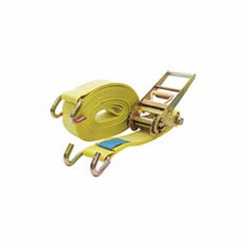 Cinta de amarre PRO para 10.000 Kg. - Parte corta: longitud 0,5 m. - Parte larga: longitudes disponibles de 9, 10 y 12 metros. - Tipo de gancho: abierto. - Presentación: rectractilado.