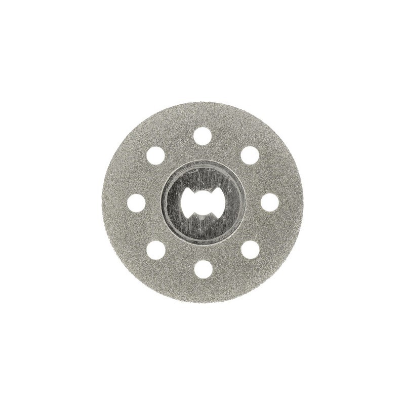 Para cortes difíciles en materiales como baldosas de suelo (pero no en metales)¿Qué proyectos puede realizar? Para hacer cortes pulidos y finos en materiales duros como mármol, hormigón y ladrillo. Diseñados para ser duraderos (completamente recubiertos de finas partículas de diamante), indeformables e irrompibles. El disco de diamante tiene orificios de ventilación para reducir el calor y producir menos restos durante su uso.¿Cómo se utiliza? Se debe utilizar con el mandril SC402. El mecanismo Easy Speedclic (SC) exclusivo de Dremel hace posible el cambio de discos sin llaves, de forma fácil y rápida: TIRAR, GIRAR y SOLTAR Los discos de corte solo funcionan con su borde Recomendamos utilizar una empuñadura de palo de golf (para dos manos) con este accesorio, y utilizar el accesorio de ángulo recto cuando un corte sea difícil de realizar. Para prolongar la vida del disco al máximo, no aplique demasiada presión y no exceda los límites de rpm Corta baldosas de hasta 12,7 mm (1/2") de grosorMateriales donde se puede utilizar Materiales duros, como mármol, hormigón, ladrillo, porcelana, cerámica, epoxi dura y madera blanda y dura. No apto para metales.Velocidad recomendada: 15.000-20.000