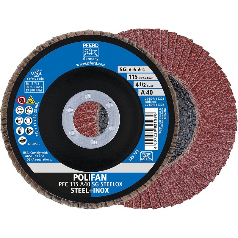 Disco de láminas lijadoras, PFERD POLIFAN PFC A SG, con un diámetro de 115 mm.