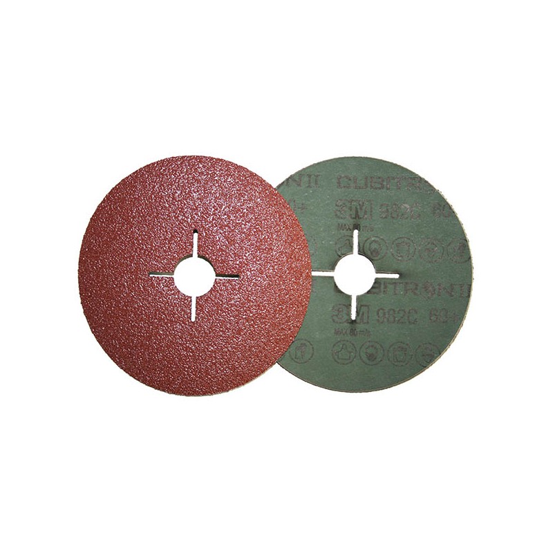 Disco de fibra para múltiples aplicaciones, 982C 3 M CUBRITON II, con un diámetro de 115, 125 o 178 mm. La tecnología PSG 3M te permite cortar a una gran velocidad y con menor presión, superando a todos los discos abrasivos cerámicos convencionales de uso industrial del mercado, y con una vida útil superior, proporcionando más piezas con menos cambios y minimizando la fatiga del operario. Su grano cerámico triangular se desgaste de modo uniforme, no genera calor y optimiza la rotura del mineral; haciéndolo más duradero y resistente al desgaste. Algunas aplicaciones sugeridas son: - Debaste de soldaduras a una presión elevada, achaflanado de bordes y biselado. - Eliminación de material de soldaduras en acero al carbono, cascarilla de laminación, depresiones abruptas e imperfecciones, y ranurado. - Debaste y homogeneización de áreas ampliadas y pequeñas en superficies metálicas. El soporte de apoyo de alto rendimiento 3M te va a permitir lograr una velocidad y un rendimiento óptimos. Datos técnicos: - Diámetro: 115, 125 o 178 mm. - Grano: 36 o 60.