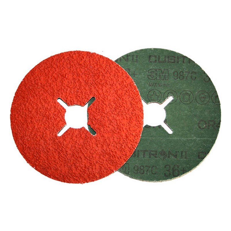 Disco de fibra para multiples aplicaciones, 982C 3 M CUBRITON II. La tecnología PSG 3M te permite cortar a una gran velocidad y con menor presión, superando a todos los discos abrasivos cerámicos convencionales de uso industrial del mercado, y con una vida útil superior, proporcionando más piezas con menos cambios y minimizando la fatiga del operario. Su grano cerámico triangular se desgaste de modo uniforme, no genera calor y optimiza la rotura del mineral; haciéndolo más duradero y resistente al desgaste. Algunas aplicaciones sugeridas son: - Eliminación de soldaduras, biselado, debaste y homogeneización. - Eliminación de cascarilla de laminación, depresiones abruptas e imperfecciones. El soporte de apoyo de alto rendimiento 3M te va a permitir lograr una velocidad y un rendimiento óptimos.