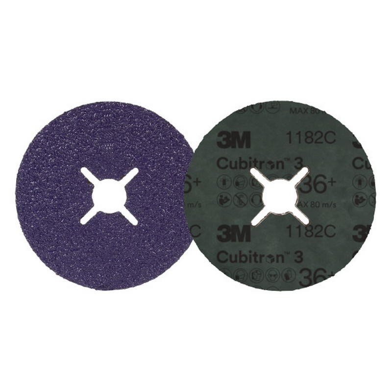 El disco de fibra 3M™ Cubitron™ 3 1182C dispone del grano PSG 3M rediseñado, lo que lleva la legendaria velocidad y vida útil de los abrasivos de alto rendimiento 3M™ Cubitron™ a un nivel completamente nuevo. Las ventajas de este producto son que aumenta la productividad y reduce los costes generales de desbaste en comparación con otros discos de fibra y discos de desbaste con centro hundido al desbastar aceros templados o al carbono. Este disco de fibra de larga duración, que elimina hasta un 60 % más de material sobrante que el disco de fibra 3M™ Cubitron™ II 982C, 36+, tiene una velocidad de corte rápida con gran eliminación de material sobrante en una amplia gama de presiones de aplicación. Además, este disco está diseñado para ayudar a reducir la exposición a la vibración de la mano y el brazo, aumentar la productividad y completar más piezas por disco en aplicaciones de desbaste de presión media a alta.