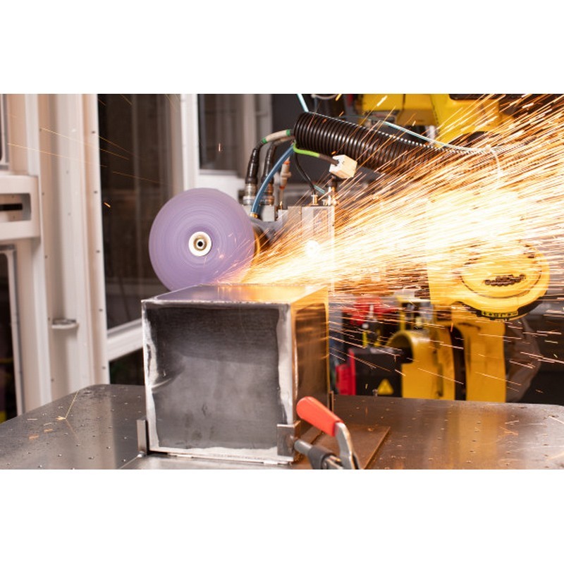 El disco de fibra 3M™ Cubitron™ 3 1182C desempeña un papel fundamental en la creación de una solución abrasiva robusta y versátil, ya sea combinado con amoladoras en ángulo 3M para mejorar la facilidad de uso del operario o incorporado en procesos automatizados, por ejemplo, el desbaste robotizado de soldaduras. Las ventajas de rendimiento del disco de fibra 3M™ Cubitron™ 3 1182C están diseñadas para mejorar y optimizar el desbaste de soldaduras automatizado, por ejemplo, en cuanto a disponibilidad, rendimiento, uniformidad y eficacia. Estos cuatro elementos clave son fundamentales a la hora de optimizar el proceso abrasivo automatizado y, gracias al disco de fibra 3M™ Cubitron™ 3 1182C, disfrutará del aumento de la vida útil del producto, de la velocidad de corte y de la uniformidad del desgaste. Estas características pueden mejorar los procesos que ya están automatizados o aumentar las ventajas de automatizar los que son manuales actualmente. Para obtener más información, póngase en contacto con el equipo de ingenieros expertos en aplicaciones robóticas abrasivas de 3M: están listos para acompañarle en su proceso de automatización, desde la idea hasta su implementación.