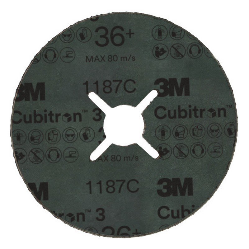 3M™ Cubitron™ 3 1187C Disco de fibra, inoxidable, 115 mm x 22 mm, Ranurado