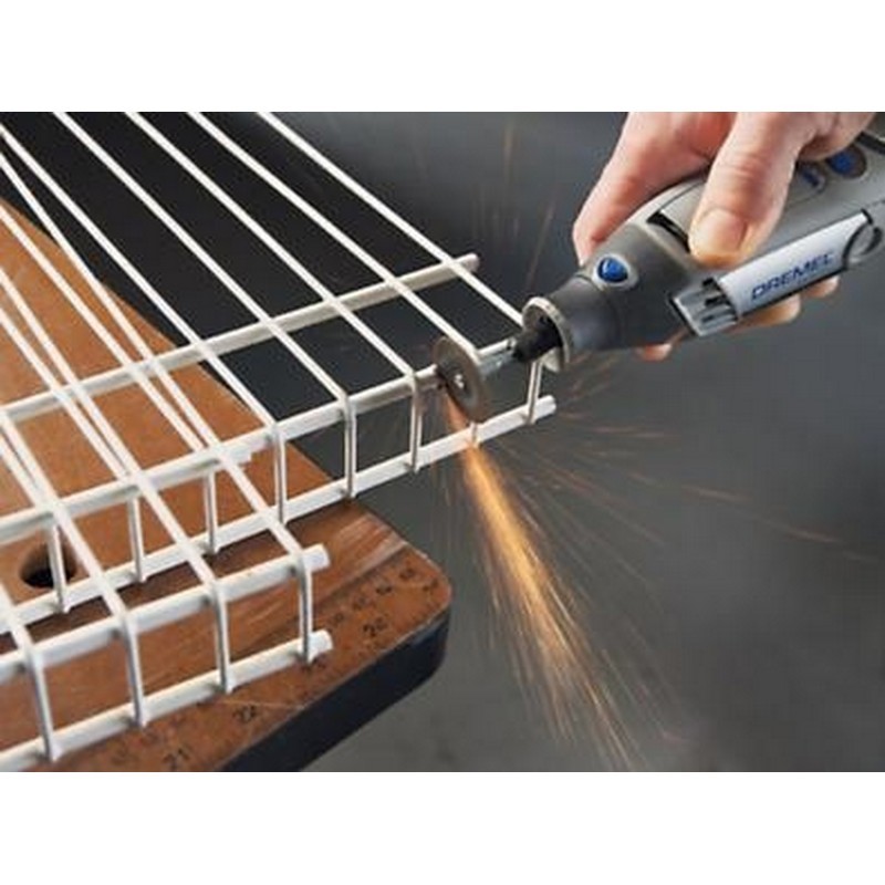 Beneficios: ¿Qué proyectos puede realizar? Ideal para cortar, hacer cortes rectos y ranuras en todo tipo de metal, como acero templado, chapas de metal o aluminio. Corte pernos fácilmente, o haga ranuras en pernos/tornillos oxidados y/o desgarrados para su extracción con un destornillador. ¿Cómo se utiliza? Úselo con un mandril 402: desatornille el tornillo superior del mandril con la llave, pase el tornillo por el orificio central del disco y vuelva a atornillarlo al mandril. Si utiliza los discos de corte de metal, corte a alta velocidad y aplique una ligera presión. Los discos durarán más y cortarán más rápido si aplica una presión más ligera en vez de una fuerte y hay menos riesgo de que se rompan. Puesto que estos discos son abrasivos, el diámetro del disco se va a desgastar. Si el disco se volviera demasiado pequeño para realizar el corte, deje de cortar y sustituya el disco. Con los discos de corte, recomendamos utilizar una empuñadura de palo de golf para dos manos para sostener y guiar la herramienta, a fin de conseguir pasarla en un ángulo recto. Si se inclina el disco durante el corte, es probable que se rompa. Materiales donde se puede utilizar Este disco de corte puede utilizarse en diferentes tipos de metal, como aluminio, cobre o hierro fundido. Pero también se puede usar para cortes pequeños en plástico o ladrillo. En materiales como metal galvanizado (conductos) o acero templado, es mejor utilizar un disco de corte reforzado (426) Velocidad recomendada Aluminio: 35000 Latón: 35000 Cobre: 35000 Plástico 10-15 000 Acero 35 000