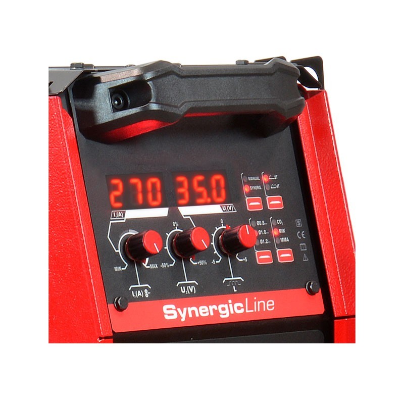 Descripción: Fuente de potencia para la soldadura multiproceso Inverter de regulación Sinérgica. Máquina compacta con devanadora integrada en fuente de potencia.
