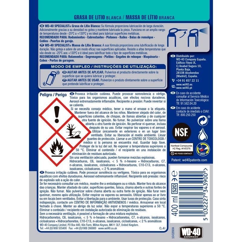 Lubricación de larga duración en todo tipo de superficies metálicas.