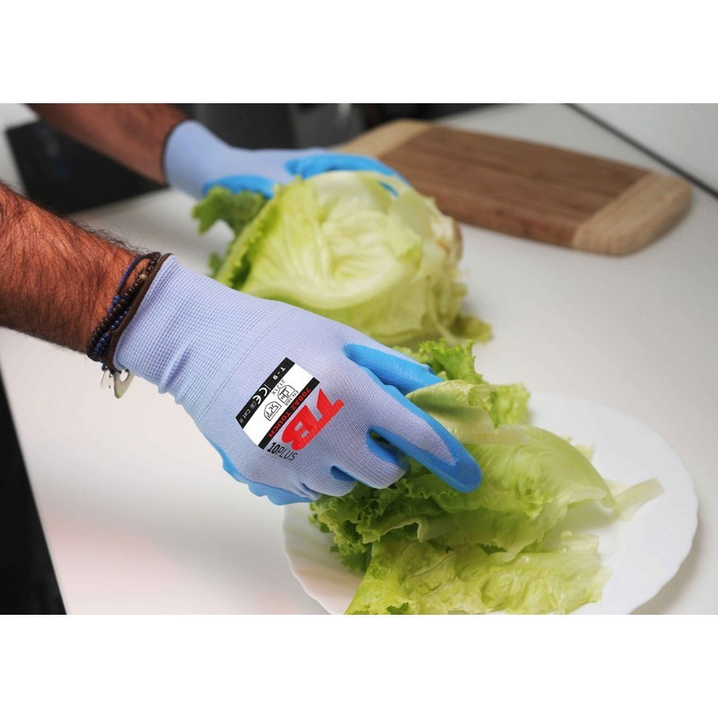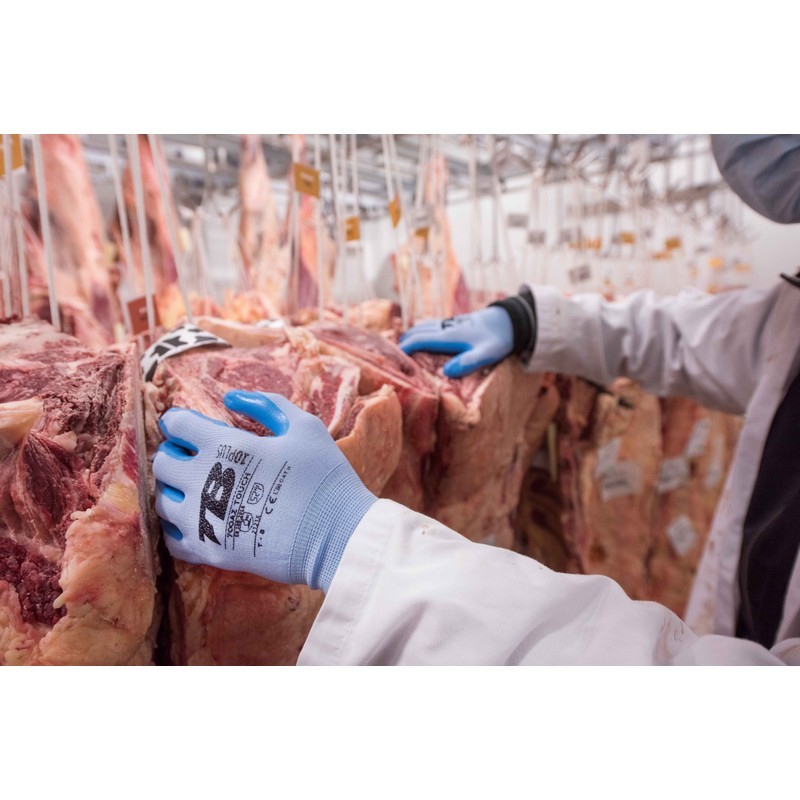 Guante mecánico nylon azul sin costuras TOMAS BODERO, recubrimiento nitrilo azul, alimentación - 700AZ TOUCH