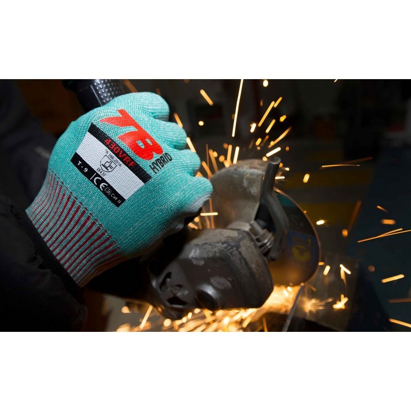 HPPE. Fibra sinténtica de gran resistencia a abrasión y tenacidad. Entre sus propiedades destacan el alto nivel de protección a corte y abrasión. Fibras de acero + Fibras de vidrio. Confieren al guante mayor protección a corte. Alcanzando en laboratorio nivel F en la prueba TDM. Acabado poliuretano en palma. Tiene una fina inyección de poliuretano en palma, permite una perfecta adaptación y trasnspiración de la mano, proporcionando una excelente sensibilidad para la manipulación de piezas pequeñas. Refuerzo entre pulgar e índice. Alarga la vida útil del EPI. Indicado en trabajos con gran desgaste y fricción.