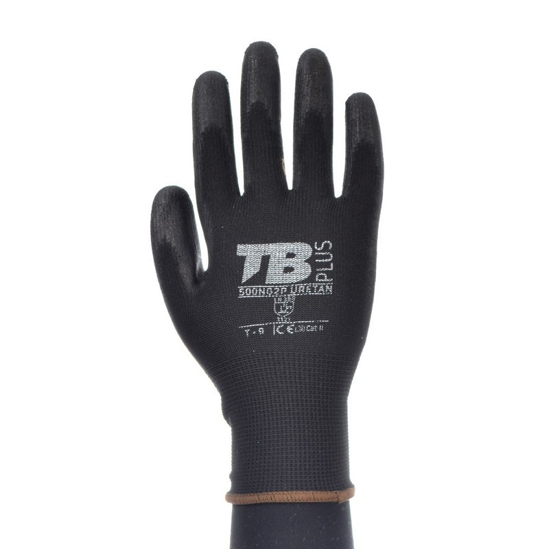 Guante poliéster negro sin costuras TOMAS BODERO, recubrimiento poliuretano mecánico - 500NG2P URETAN