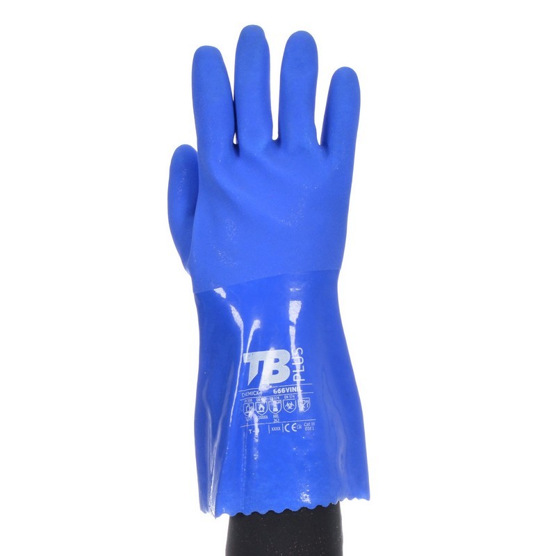 Guante de PVC TOMAS BODERO, sin costuras, flexible, resistente e impermeable, ofrece una gran comodidad durante el trabajo, gracias a su acabado interior de algodón y a su grosor de 1,5 mm.