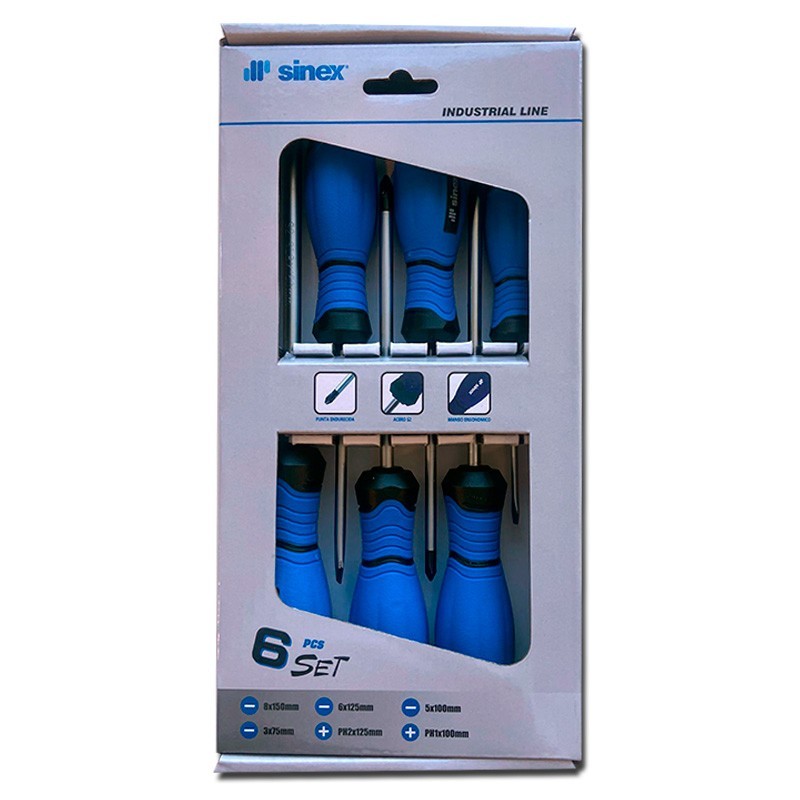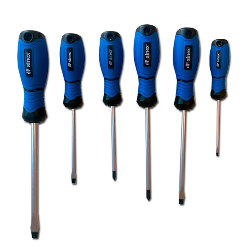 Juego de 6 destornilladores SINEX planos y PH, mango bimaterial