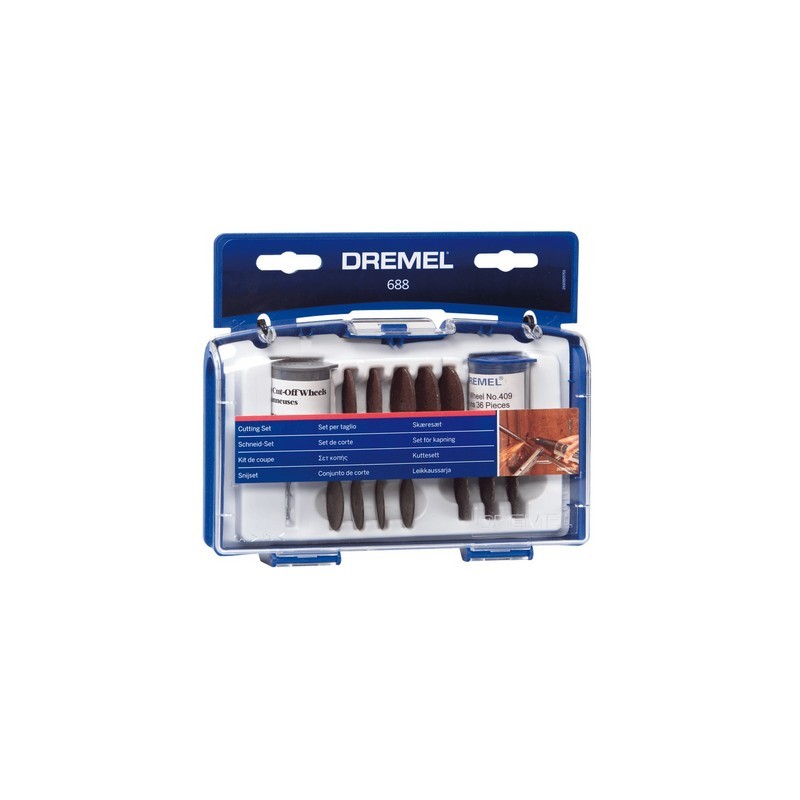 Juego de 68 accesorios de corte para cortar en una amplia variedad de materiales. Selección de 68 discos de corte presentados en un práctico maletín. Los 3 separadores incluidos permiten guardar los accesorios de forma óptima. La guía de inicio rápida de Dremel ofrece información sobre los accesorios incluidos.