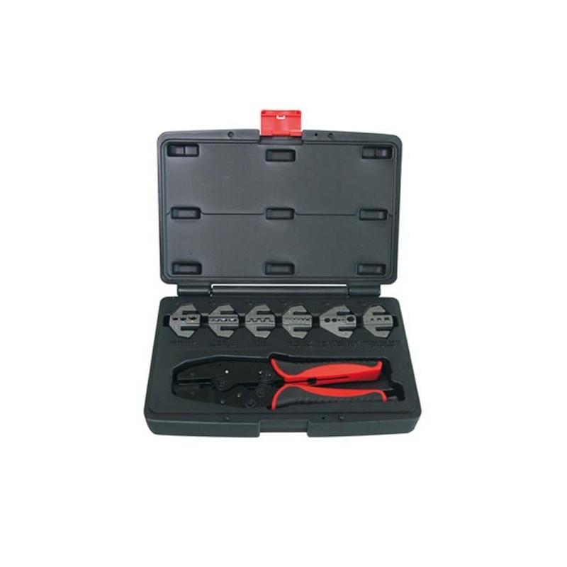El Juego de Alicates VES1907 de MetalWorks está formado por una pinza de engastar con un pico de fijación rápida y 6 juegos de mordazas.