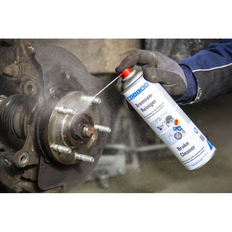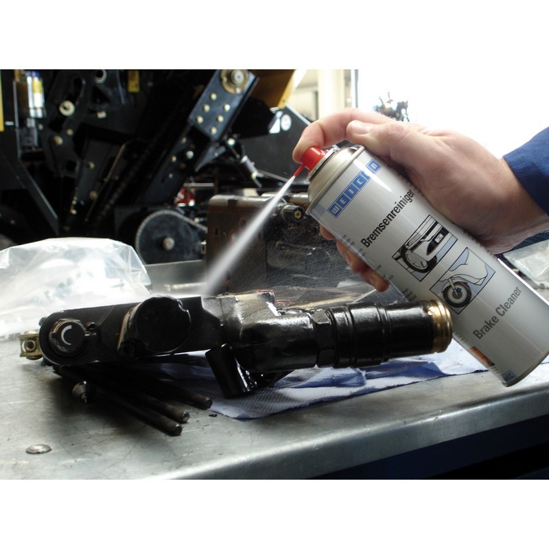 El Limpiador de Frenos es un limpiador universal para el sector automovilístico. Limpia y desengrasa sin dejar residuo alguno después de evaporarse. El Limpiador de Frenos WEICON desengrasa y limpia rápida y fácilmente metales, vidrio y numerosos plásticos y elimina toda la suciedad aceitosa o grasosa sin dejar residuos. El Limpiador de Frenos WEICON puede aplicarse en los frenos (frenos de tambor y de disco, guarniciones, zapatas de freno, cilindros, resortes y bujes), en embragues (guarniciones y piezas de embragues) o en piezas del motor (carburadores, bombas de gasolina y aceite, transmisiones, etc.).