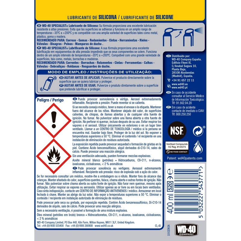 Lubricación resistente a la fricción y a altas temperaturas (hasta 200ºC). Compatible con plásticos y gomas. NSF H2
