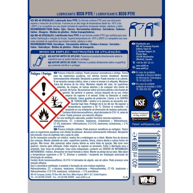 Lubrica y protege dejando una película resistente a la suciedad. Ideal para engranajes, cadenas, carriles de puertas y ventanas.