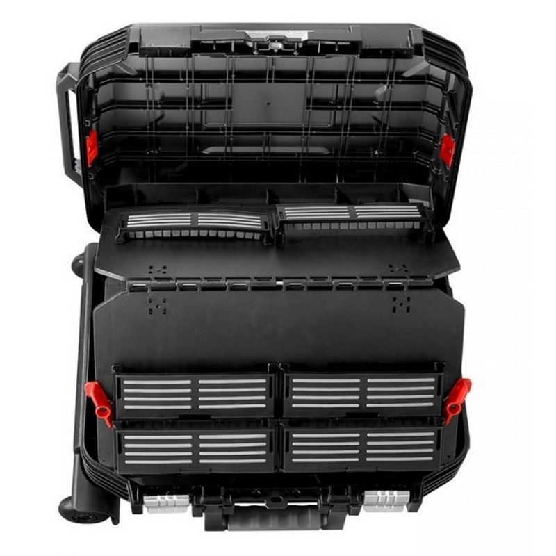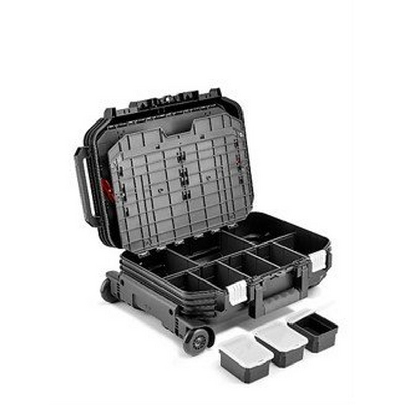 - Resistencia al impacto: resistente y duradero con cuerpo y tapa de PP reforzado con fibra de vidrio. - Pestillos de metal de alta resistencia. - Mango recubierto de goma gruesa para un agarre superior. - Divisores horizontales y verticales extraíbles. - Diseño de acordeón plegable con múltiples posiciones para un fácil acceso. - Peso máximo soportable: 30 kg