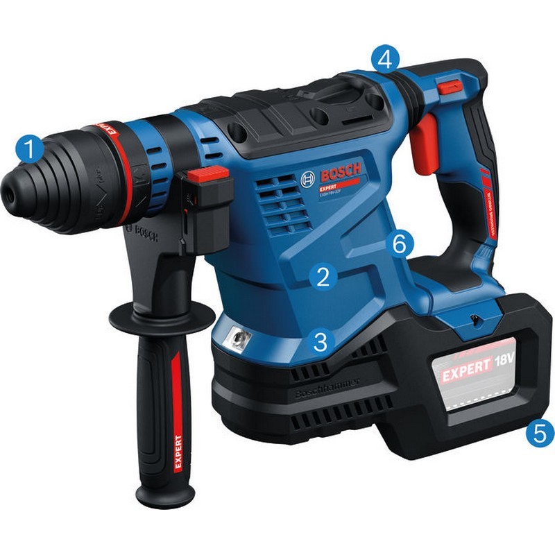 El EXPERT EXBH18V-32F es un martillo perforador SDS plus, robusto y de alta velocidad, para perforaciones de gran tamaño y profundidad. Incrementa tu rendimiento gracias a su velocidad de perforación un 60 % superior en diámetros medianos (?10-20 mm), en comparación con el GBH 18V-28 Professional. Todo lo consigue gracias la tecnología BITURBO Brushless sin escobillas, con motor y transmisión mecánica de alto rendimiento, diseñados para aprovechar al máximo toda la alta potencia de nuestras baterías EXPERT. La transmisión de alto rendimiento incrementa tu rendimiento y permite fijar significativamente más anclajes por carga de batería y en aplicaciones exigentes. El martillo perforador SDS plus incorpora mayor protección: el control antivibración reduce las vibraciones dañinas para menor cansancio, mientras que la función KickBack Control minimiza el riesgo de lesiones al detener el motor cuando la broca se atasca. El EXPERT EXBH18V-32F incorpora una protección excelente de la herramienta con una carcasa resistente para la batería, que la protege en caso de caída. La herramienta es fácil de configurar e incorpora dos modos de trabajo: potencia al 100 % para materiales robustos y potencia al 70 % para materiales delicados. EL EXPERT EXBH18V-32F a batería está diseñado para percutir en hormigón y ladrillo, para fijación de armado de acero, desbaste de superficies, anclado robusto y trabajo de cincelado. Compatible con el Bosch Professional 18V System y con la alianza de baterías multimarca AMPShare.