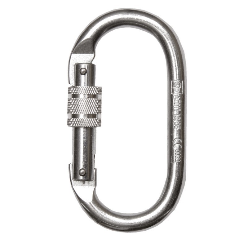 - Mosquetón básico de acero con mecanismo de bloqueo de rosca, de cierre automático. - Apertura: 19 mm. - Resistencia estática: 25 Kn. - Medidas: 130x56,5 mm. - Standard: EN362 Clase B