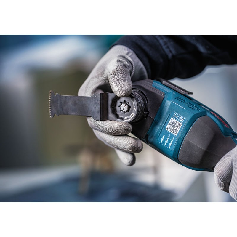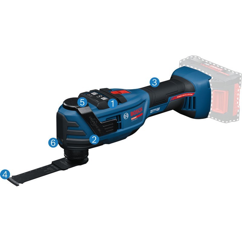 La EXPERT EXOP18V-40 es una multiherramienta oscilante de 18V con un rendimiento sobresaliente, diseñada para abordar hasta las tareas más exigentes con cualquier accesorio Starlock compatible, incluidos los StarlockMax. Su potente motor Brushless sin escobillas permite un movimiento oscilante con potencia equivalente a la de una herramienta con cable de 550 W. Cuenta con un ángulo de oscilación de 4,0° para una eficiencia máxima al cortar. El sencillo mecanismo de encaje a presión permite cambiar rápidamente de cuchilla, sin herramientas adicionales ni riesgo de perder la llave de fijación. El control antivibración reduce de manera eficiente las vibraciones dañinas y la empuñadura delgada permite trabajar con la máxima comodidad gracias a su circunferencia de solo 150 mm. Compatible con el sistema Bosch Professional 18V System y con la alianza de baterías multimarca AMPShare. La EXPERT EXOP18V-40 cuenta con seis velocidades, control de parada para reducir el riesgo de daños o lesiones, y control de velocidad adaptativo para una excelente precisión de corte. La luz LED ilumina perfectamente cualquier área de trabajo.