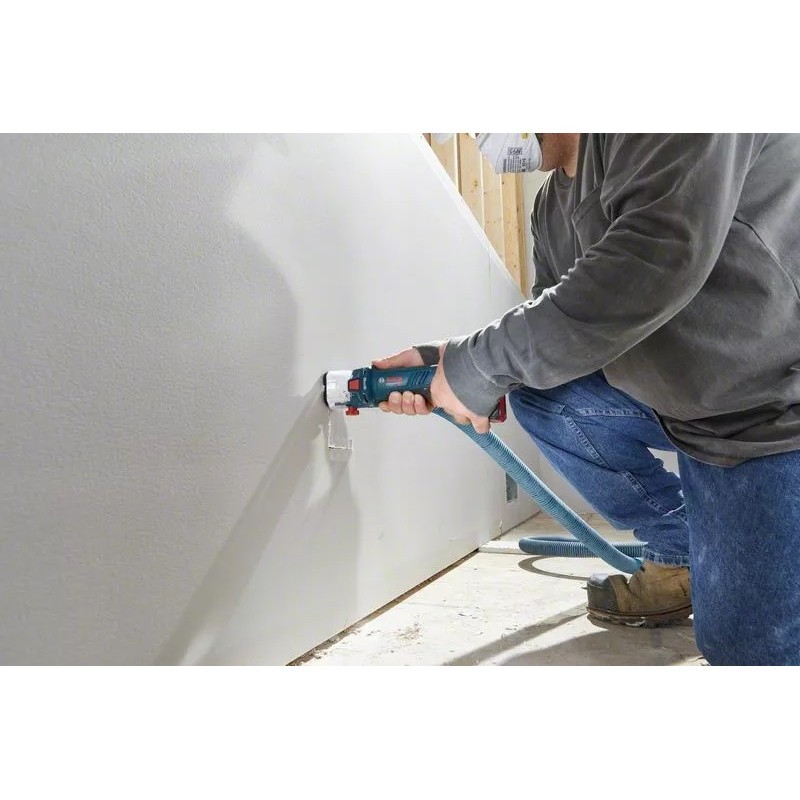 La herramienta incluye de serie un adaptador de polvo muy eficaz para proteger la salud del usuario y mantener el lugar de trabajo más limpio, así como 3 pinzas de sujeción. También tiene un interruptor con sellado IP5X para evitar la penetración del polvo que ayuda a evitar el fallo prematuro de la herramienta a causa del fino polvo de los paneles de yeso, un potente LED para iluminar la zona de corte, un freno de motor para detener el giro de la broca al instante y un clip de sujeción al cinturón para tener la herramienta siempre a mano.