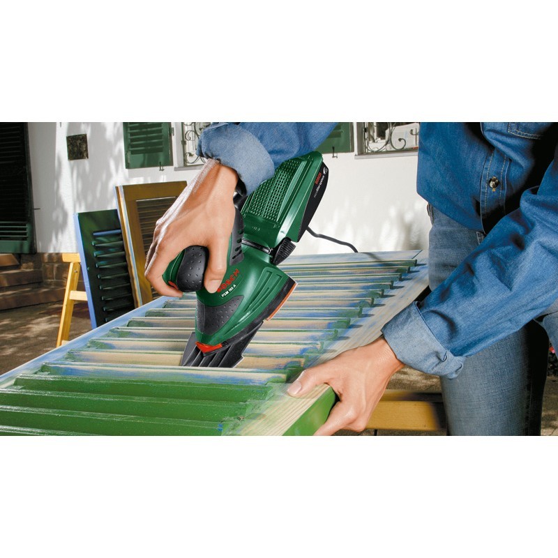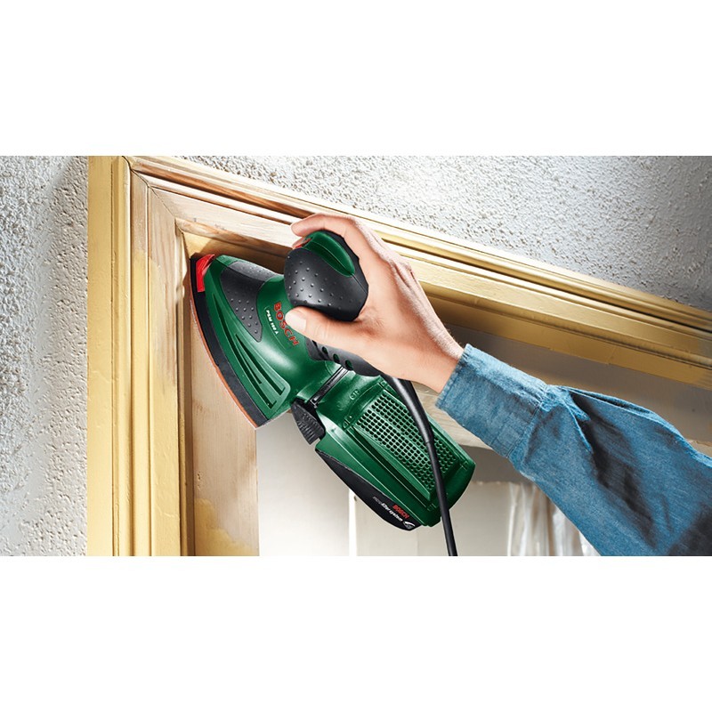 Lijadora de mano versátil y precisa con punta extraíble para accesorios La multilijadora PSM 160 A es un todoterreno para lijar y pulir, que combina las funciones de una lijadora orbital y una lijadora delta. Su plato de lijado se basa en la forma de una plancha, mientras que su eficiente diseño de dos partes significa que puede ser utilizado para una amplia gama de trabajos. Esto hace que el PSM 160 A sea adecuado para una amplia variedad de tareas de lijado: a lo largo de los bordes, en las esquinas y en grandes superficies. La parte delantera en forma de delta de la plancha de lijado también se puede girar.