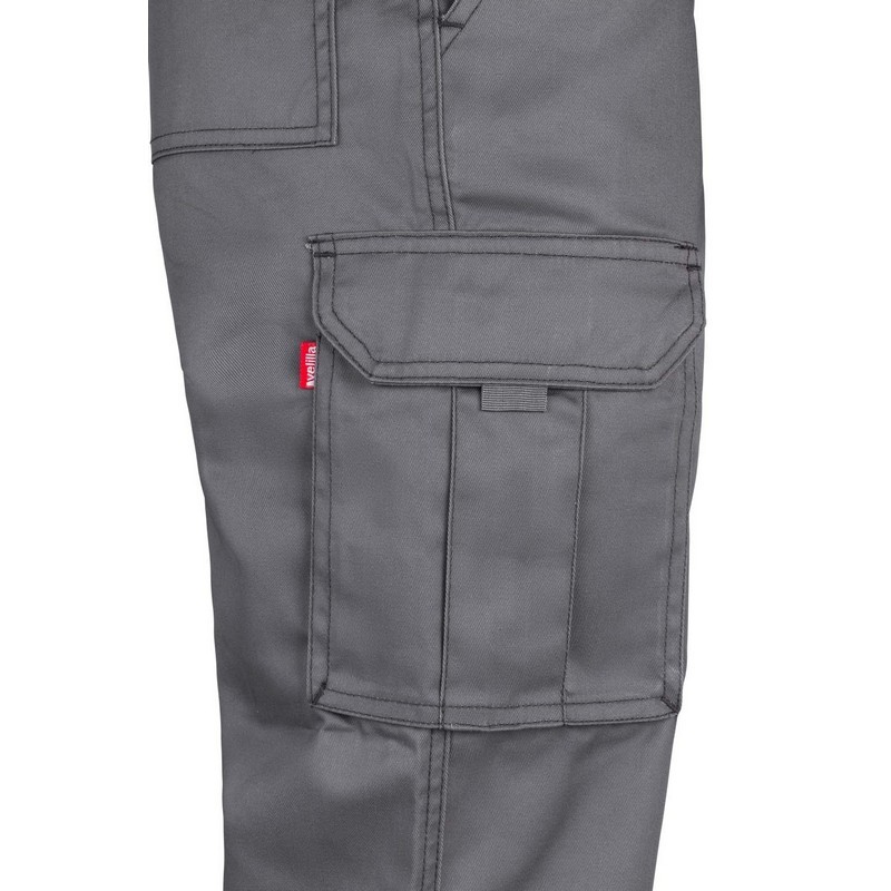 Pantalón VELILLA Sarga es una prenda muy resistente, que cuenta con un cierre central a través de cremallera y botón, cintura elástica, doble costura y refuerzo de tejido trasero. Además, incluye 6 bolsillos amplios donde guardar herramientas: 2 bolsillos franceses, 2 bolsillos de fuelle con tapeta, velcro y tiradores, y 2 bolsillos de parche traseros con tapeta y velcro.