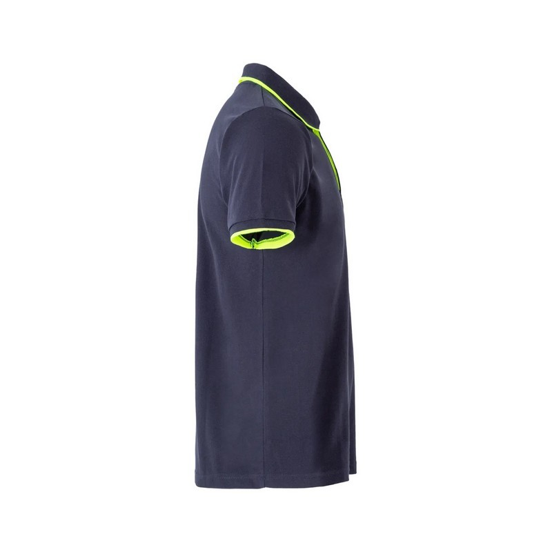Polo de manga corta VELILLA es una prenda polifacética, que combina la elegancia de una camisa y la comodidad de una camiseta, y cuenta con cierre central a través de botones.Datos técnicos:- Material: Piqué.- Composición: 60% Algodón y 40% Poliéster.- Color: Azul navy-Amarillo flúor / Gris-Naranja flúor.- Talla: S / M / L / XL / XXL / 3XL.- Suministro de serie: Parche suelto, sin coser.