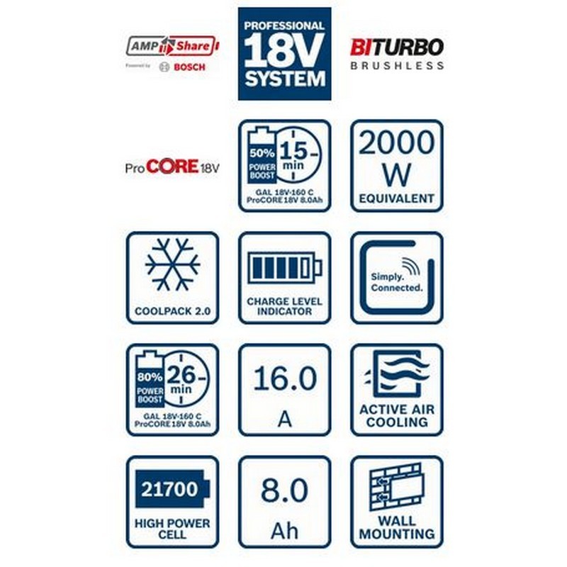 Juego básico 2 x ProCORE18V 8.0Ah + GAL 18V-160 C + GCY 42 - BOSCH 1600A016GP