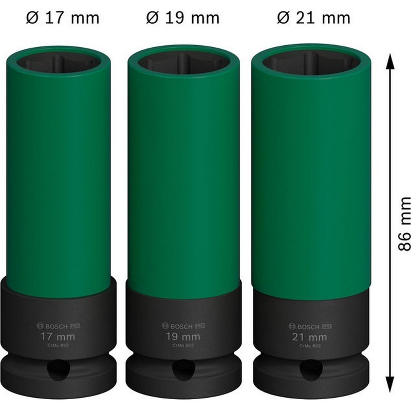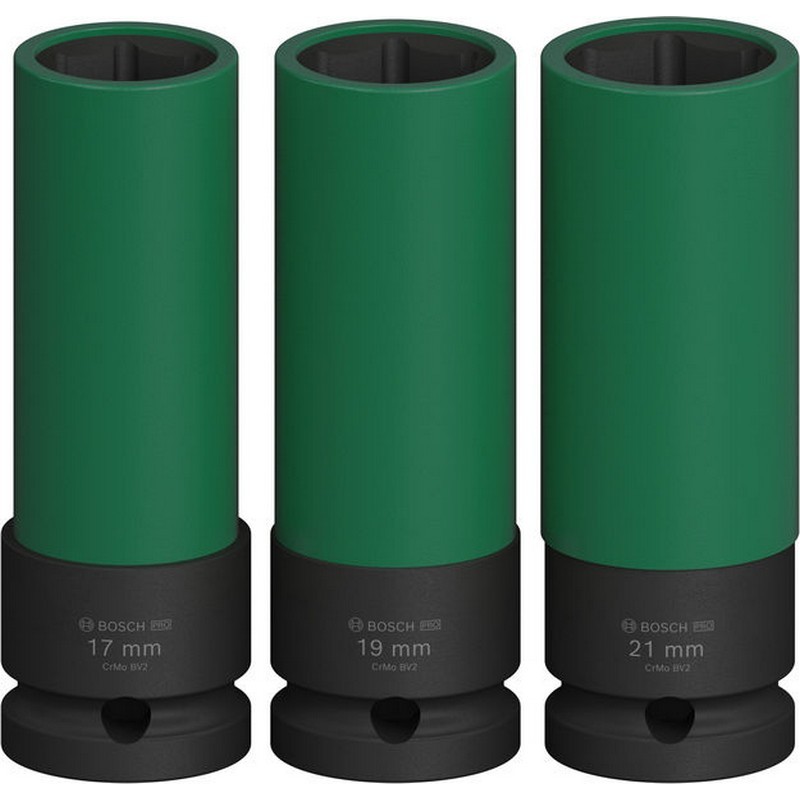 Set de vasos de impacto BOSCH PRO Impact, fundas de PET, 1/2", muy profundas, 17/19/21 mm