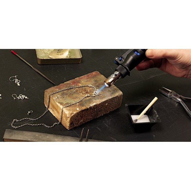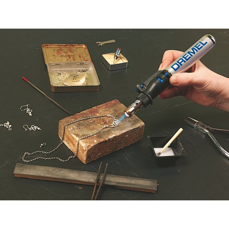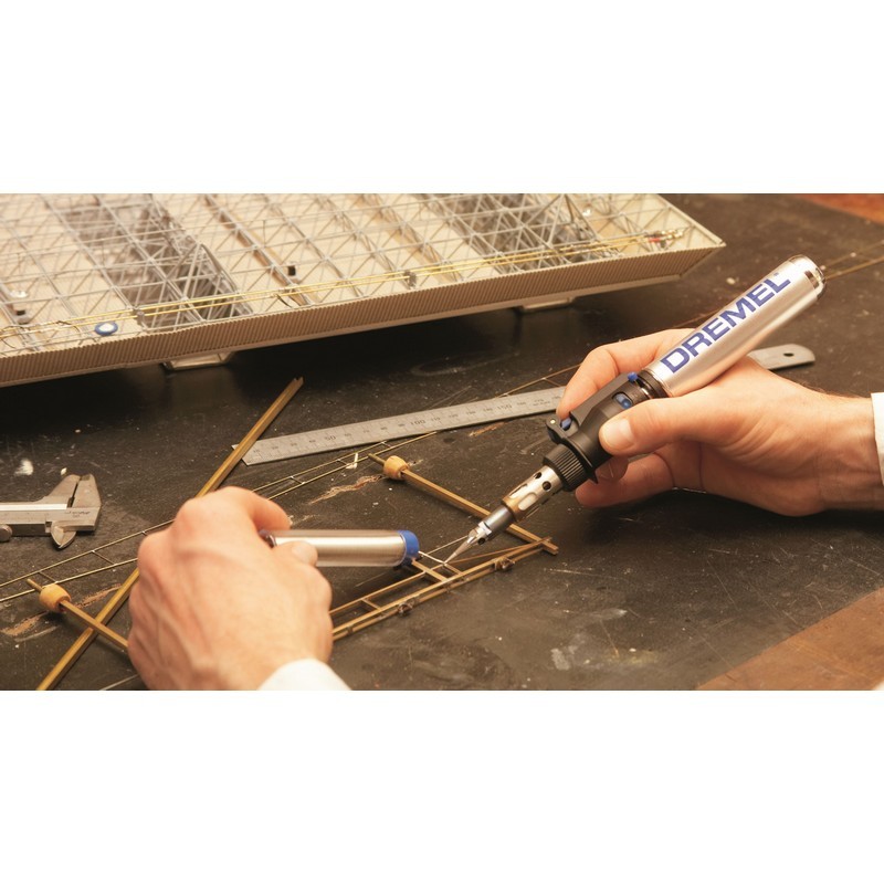 El Dremel VersaTip es un soldador versátil sin cable que funciona con gas butano y es apto para distintas aplicaciones, desde soldadura a pirograbado. Ofrece control variable de temperatura, bloqueo de la llama para uso continuado y bloqueo para evitar contratiempos.