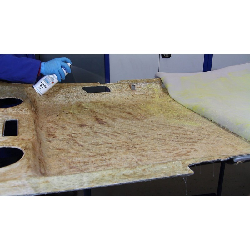 El Spray Adhesivo - extra fuerte - puede aplicarse para pegar fieltro, lámina de PVC, cuero sintético, alfombrado, plásticos, cartón, caucho celular, goma musgosa, materiales aislantes, plástico celular blando, vinilo, cuero, goma así como metal y madera y es apto para pegar grandes superficies.