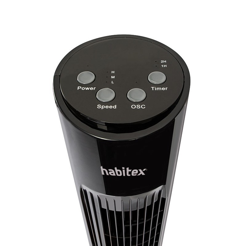 El ventilador de torre HABITEX VT-50 tiene una potencia de 45W con 3 velocidades ajustables. Dispone de un cabezal oscilante con panel de control donde puedes selecionar las funciones que precises. Además, gracias a su temporizador de 60, 120 o 180 minutos y a su mando a distancia podrás ajustar el tiempo de desconexión para poder conciliar el sueño durante las noches sofocantes. Viene presentado en una caja y tiene 3 años de garantía.